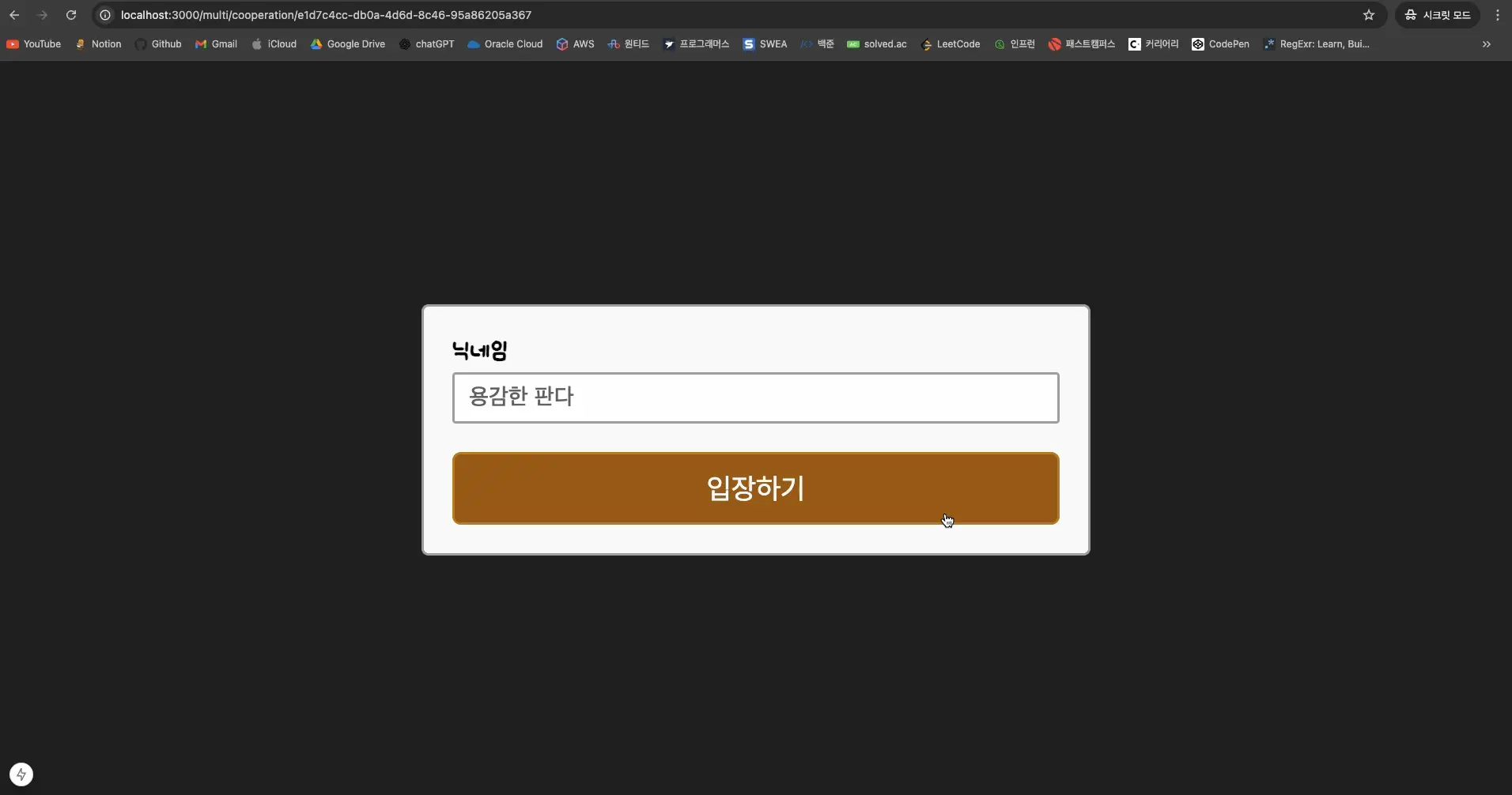 1. 유저편의성을 위해 생성한 게임 방의 URL을 통해 대기실에 입장할 수 있어요.2. 만약 이미 게임을 시작한 방이라면 입장할 수 없어요.